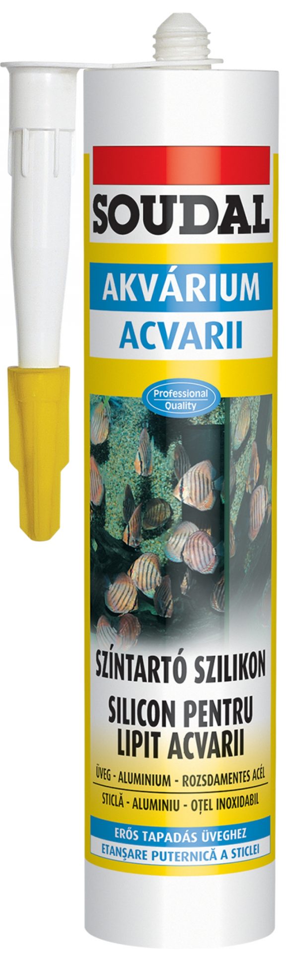 100% kristálytiszta, szilikon tartalmú ragasztó-tömítő anyag, elsősorban akvárium, terrárium és egyéb üveg tárolókhoz, melyben élő szervezeteket tartanak.