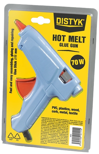 Pisztoly – különböző anyagok olvasztott polietilénnel (ragasztórudak) való ragasztására, illetve javítására alkalmas.